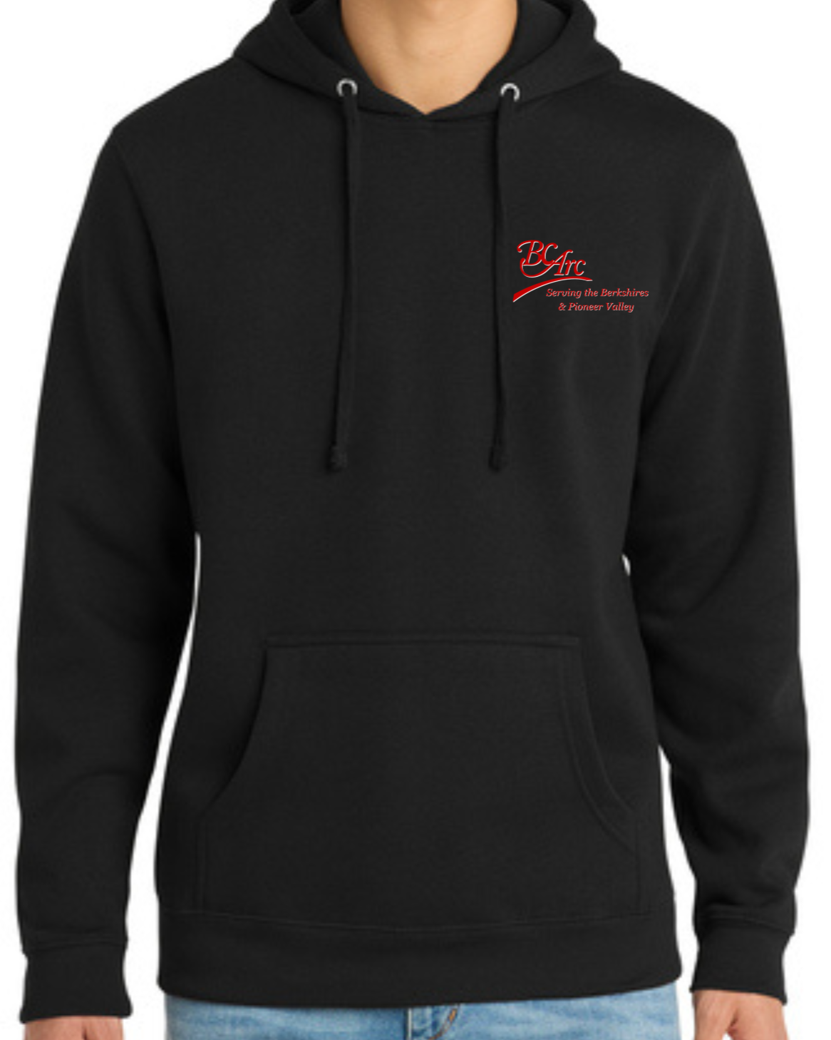 Showcase your support with the BCArc Logo Hoodie. This black hoodie features a front chest logo and "BCArc" printed on the sleeve.
